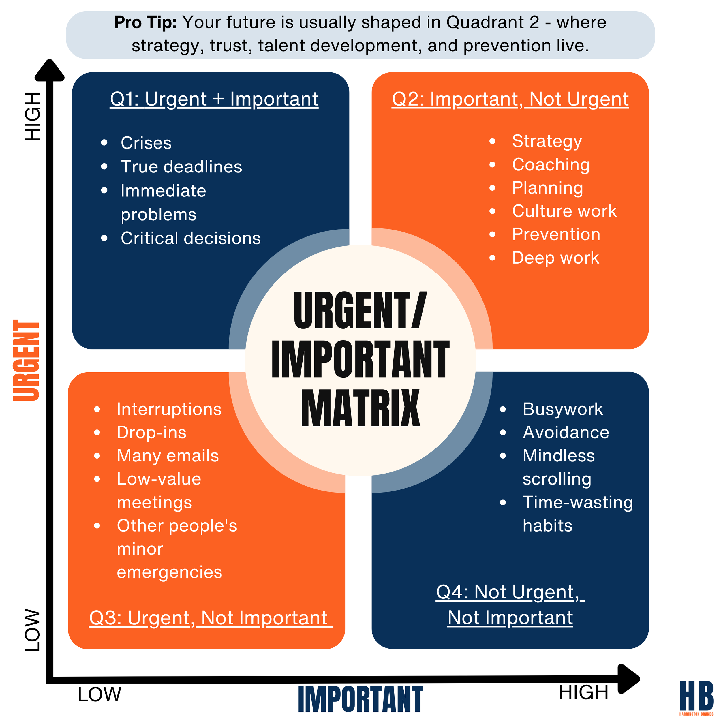 The leadership lesson is simple: your future is usually shaped in Quadrant 2. That is where trust is built, talent is developed, culture is strengthened, and problems are prevented before they become crises.